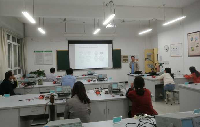 接下来,竹老师带来了科研讲座,对半导体掺杂相关概念和钝化现象进行了介绍,随后,参会教师针对本主题进行了积极讨论。