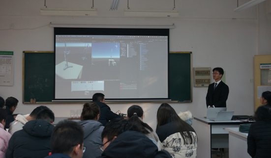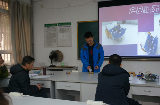 接下来,12个兴趣小组学生依次汇报了本届开放实验的工作,涉及到三维虚拟弹性模量实验仪、自制物理实验仪器的实践、一种智能压电生物传感器的研究、3D打印机的维修与使用、混沌现象演示仪的制作、循迹与避障小车设计与制作、环保节能降温装置试验、电磁炮的设计与制作等12项研究课题,成果形式丰富多样,包括幻灯片报告、软件展示和实物模型。从学生激情飞扬的汇报中可以看出,经过12周的学习和研究,各小组认真努力,准备充分,大部分小组得到了理想的结果。其中三维虚拟弹性模量实验仪、自制物理实验仪器的实践可作为自制实验设备为后续综合实验和其他实验教学作为案例教学,也为后续参与实验竞赛打下了基础。最后评出了一等奖3项、二等奖4项、三等奖5项。