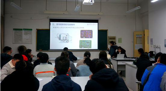 首先,牛海波老师介绍了开放物理实验的意义,指出开放物理实验与大学物理课程同步进行,围绕实验内容的拓展、实验仪器的改进及自制、实验方法的革新等展开,是物理教学部多年坚持的教学创新。学生经过选题、讨论、分析并动手完成,最后撰写科技报告并汇报答辩,使学生经历了完整的科研训练,得到了创新能力培养。