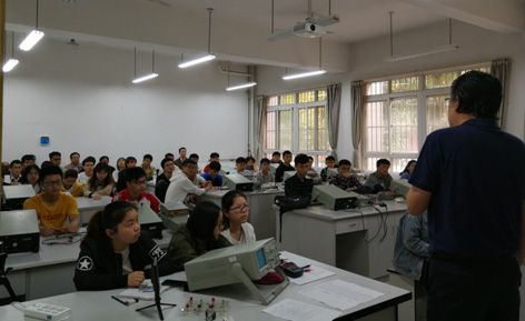 接下来12位指导老师分别介绍了各自的课题,针对各自的课题特点进行了详细介绍,现场气氛热烈,多次出现热烈的掌声。单臂电桥的改进,榫卯结构探究,扫地机器人,用电流补偿法测小电珠的伏安特性曲线,白光LED光源制作及调试等各具特色的课题,提高了学生对于课程的吸引力。根据学生各自的兴趣点,学生对项目进行选择,最终每位老师大约有4名学生,开放实验的分组顺利完成。