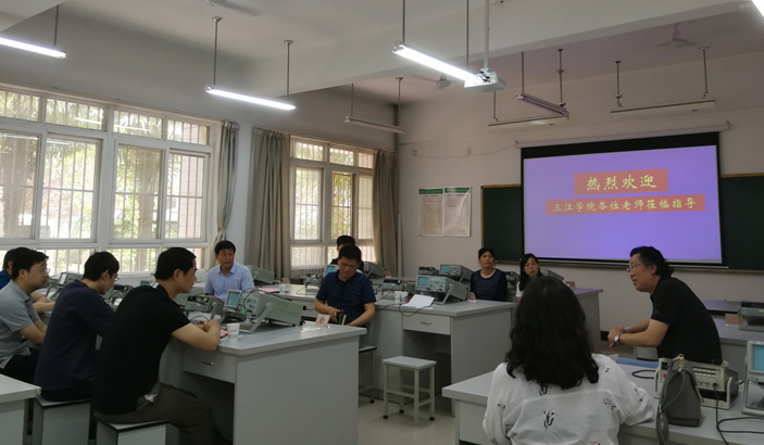 接下来,双方就教学教改中彼此关心的问题进行了交流和探讨。之后,三江学院数理部老师对我院物理实验室进行了参观,并和物理教学部各位老师就如何更好的突破教学环节,解决实际问题进行了更有针对性的交流。牛海波副教授阐述了保证基础、重能力、重应用的物理课程建设思路及具体实践,实验室主任王小克老师分享了实验教学环节课前加强预习,全过程贯彻启发式教学的经验,大物负责人竹有章老师介绍了加强互动,加强概念理解的举措。三江学院物理部老师就大物题库建设、实验课增强现实手段作了介绍。另外,双方就虚拟教学、教学管理、教学方法也进行了探讨。