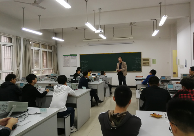 接下来,各位指导老师对各自的课题进行了介绍。其中,梁颖亮老师带来的课题是指针式检流计放大器。用检流计测量数据,再用集成器二极管做成放大电路。李育新老师带来的课题是三维建模。利用Blender和Unity软件设计完成鼠标或手机触摸完成图像中的动态效果。李宏利老师带来的课题是教学辅助软件的制作。包括利用Flash或PS进行动画制作,数据库应用于实验管理和单片机控制固定电机。雷玉明老师带来的课题是恒温箱和测量时间基数。利用制图,电气和电路等知识完成课题。