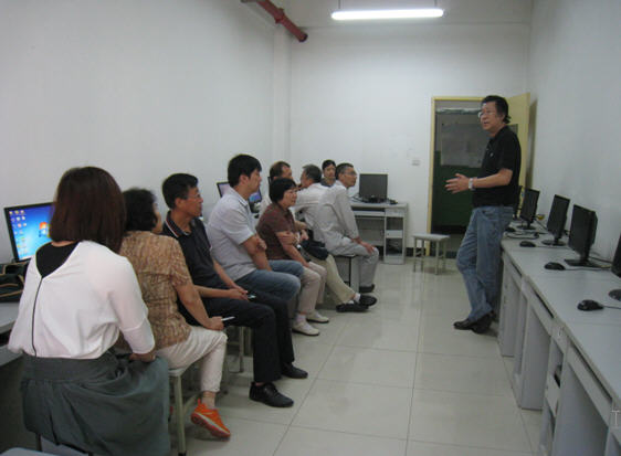 接下来,刘会玲老师就origin7.5软件作了介绍。雷玉明老师和刘老师通过2个实例:《电阻温度系数》和《三线悬摆》实验数据分析和作图,由浅入深、循序渐进地介绍了Origin 7.5软件的基本功能、作图方法和技巧,并指导每位老师完成了数据的分析、二维绘图和函数拟合等。