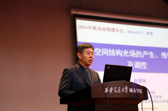 本次大会特别邀请了教育部高等学校“物理专业教学指导委员会”副主任,教育部长江学者特聘教授、复旦大学物理学系金晓峰教授做了《诗情画意物理学》的专题报告;潘建伟院士科研团队、中国科学院项目“百人计划”入选者、中国科学技术大学陈凯教授做了《量子信息和通信新进展》的专题报告;教育部空间应用物理与化学重点实验室主任、西北工业大学光信息科学与技术研究所所长赵建林教授做了《空间结构光场的产生、传输、及调控》的专题报告;陕西省物理学会理事,西安理工大学理学院应用物理系主任施卫教授做了《雪崩倍增相干合成光电导THz辐射源研究进展》的专题报告。