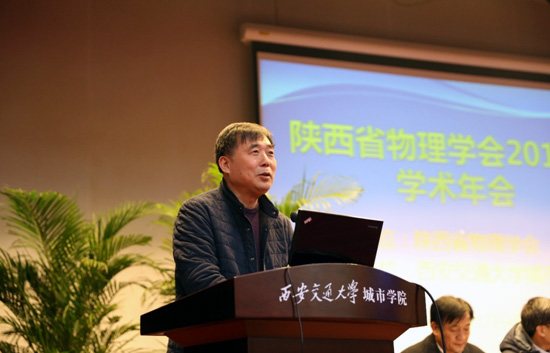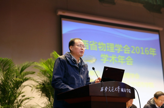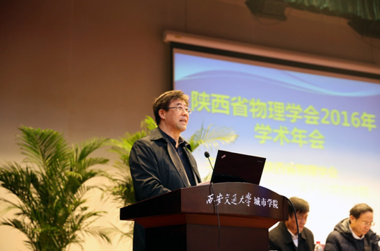 2016年12月17日,陕西省物理学会2016年学术年会在西安交通大学城市学院召开,本次年会由省物理学会秘书长、西北大学物理学院院长白晋涛教授主持。陕西省物理学界著名专家学者及特邀专家,陕西省从事教学与研究的物理工作者代表共260余人参加了会议。 大会伊始,省物理学会理事长、西安交通大学城市学院院长陈光德教授致开幕词。陈院长对大会的召开表示热烈的祝贺,对与会代表表示热烈的欢迎,并预祝大会圆满成功。省科学科技协会学会部田世坡部长代表省科协致辞,对本次年会的召开表示祝贺,并对学会的发展提出了建议。