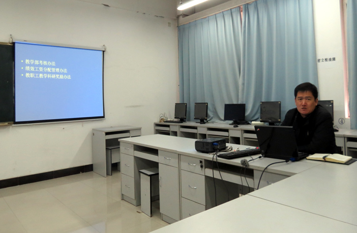 牛老师首先详细介绍了学院绩效考核制度体系建设与考核工作方案的相关情况,并就部门实际情况具体量化了相关考核实施标准及奖励性绩效分配方案,接下来安排了课程负责人及其他各个老师这学期需要完成的工作及今后的工作重点。最后,牛老师指出绩效考核工作是部门的一项重要工作,各位老师一定要高度重视,认真学习并贯彻执行。