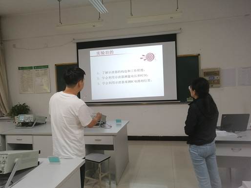 首先,刘兆梅老师以《示波器的基本原理和使用》实验为例,以“电子如何显示信号?”这一问题为目标,采用问题启发式教学法,对示波器的原理、结构进行了介绍,在授课过程中强化了对学生实验思想和实验方法的传授,突出了实验对学生动手能力的培养和人文品格的塑造。