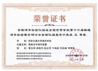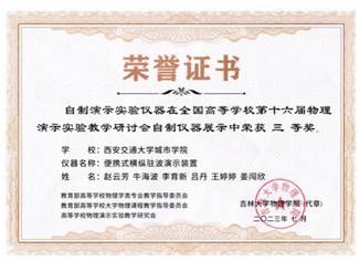在物理演示仪器展评环节,我校提交的“便携式横纵驻波演示装置”和“便携式牛顿环装置”获得三等奖。此次获奖作品的设计灵感来源于“教学过程中学生对物理图景理解不准确”的问题,老师们通过教学设计,将其提炼为开放物理实验题目进行研究,经过多次修改设计并调试,制成本次参赛仪器。