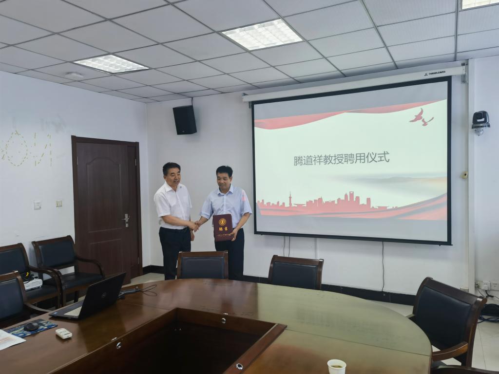会上,学校聘任滕道祥教授为兼职教授,朱旭副校长为滕道祥教授颁发聘任证书。