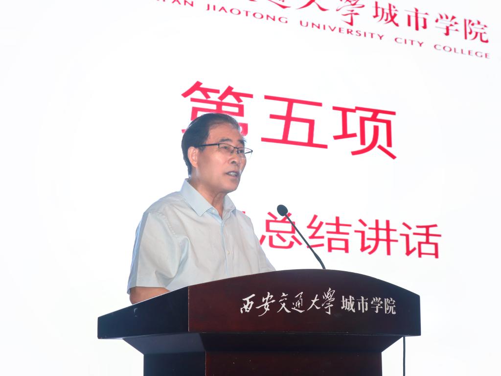 刘吉轩院长总结讲话。他强调了本科毕业设计的重要性。他指出,毕业设计是毕业生学习生涯中的重要环节,不仅是对所学知识的综合运用,更是对实践能力的一次全面检验,希望同学们能够高度重视、认真准备,确保毕业设计质量。针对未达到毕业要求学生,他叮嘱大家一定要注意涉及毕业的各项内容完成情况。他鼓励未就业学生及时调整就业预期,科学规划就业目标,持续强化就业能力,切实提高就业积极性,并向全体2024届毕业生送上了美好的祝福。
