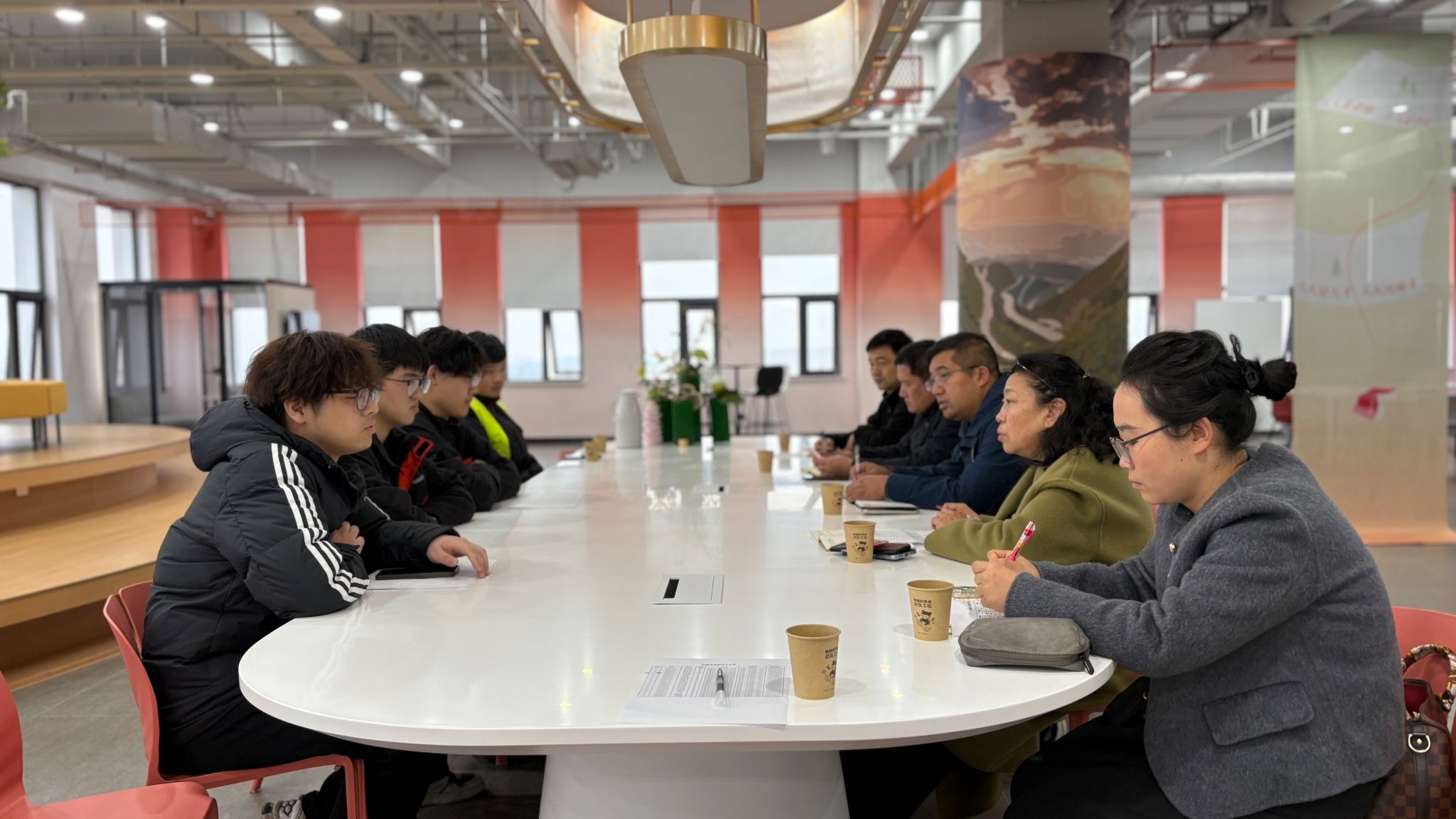 调研期间,学院领导还与在企吉利班学生代表进行座谈,深入了解学生的实习情况。王国平副院长和王小丽老师根据学生实习岗位特点,与企业导师、参会学生共同商定了毕业设计课题,确保课题内容与工程实践紧密结合。