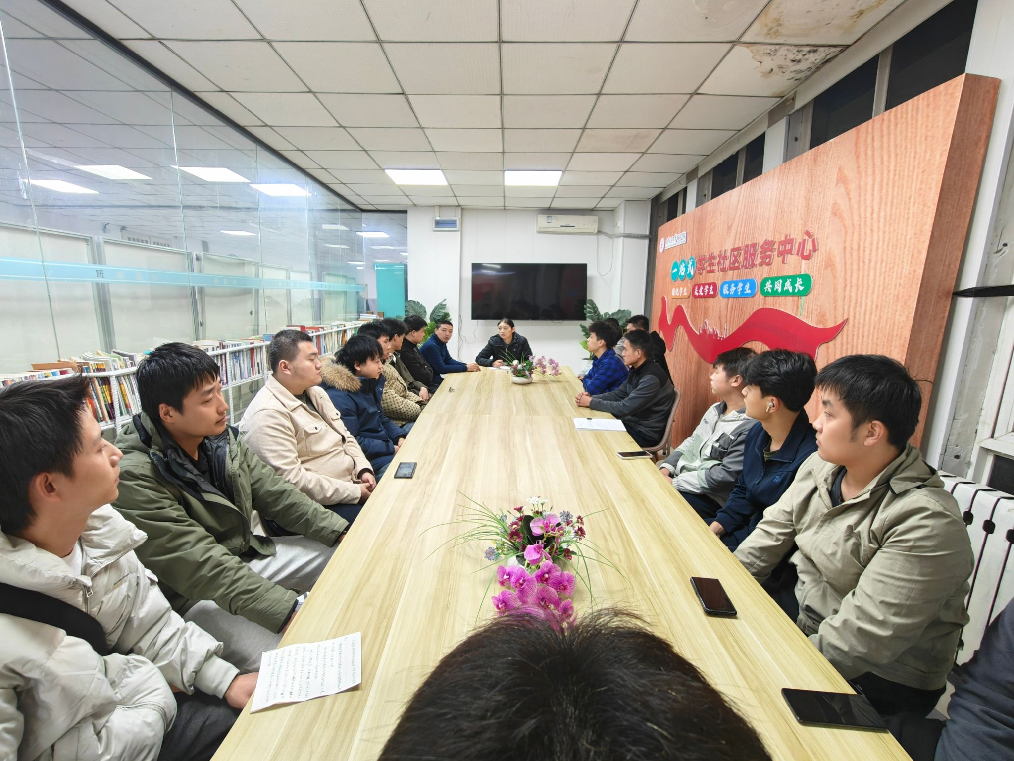 座谈会伊始,王丽丽指出,退役军人大学生是校园中极具特色的优秀群体,学校始终将这一群体的成长发展放在重要位置,此次座谈会旨在搭建“零距离”沟通桥梁,精准捕捉大家在学业进阶、生活适应中的“急难愁盼”,通过靶向施策、精准赋能,为大家扫清成长障碍,让每一位退役学子都能在校园中安心求学、舒心生活、潜心成长。王老师详细解读了学校针对退役军人大学生的专项奖助学金、就业创业扶持等帮扶政策,提醒大家精准对接申报渠道,确保政策红利应享尽享;更倡导同学们主动走出“舒适区”,积极参与校园文化活动、志愿服务、主题实践等,在参与中找到归属感,真正融入校园大家庭。