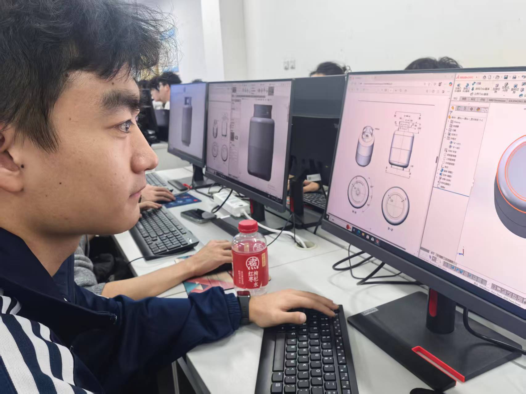 在讲座的下半场,内容转向了当前SolidWorks领域先进的建模技术与理念。整场讲座持续了近两个小时,内容深入浅出,理论与实践紧密结合。激发了同学们对创新产品形态设计的浓厚兴趣。