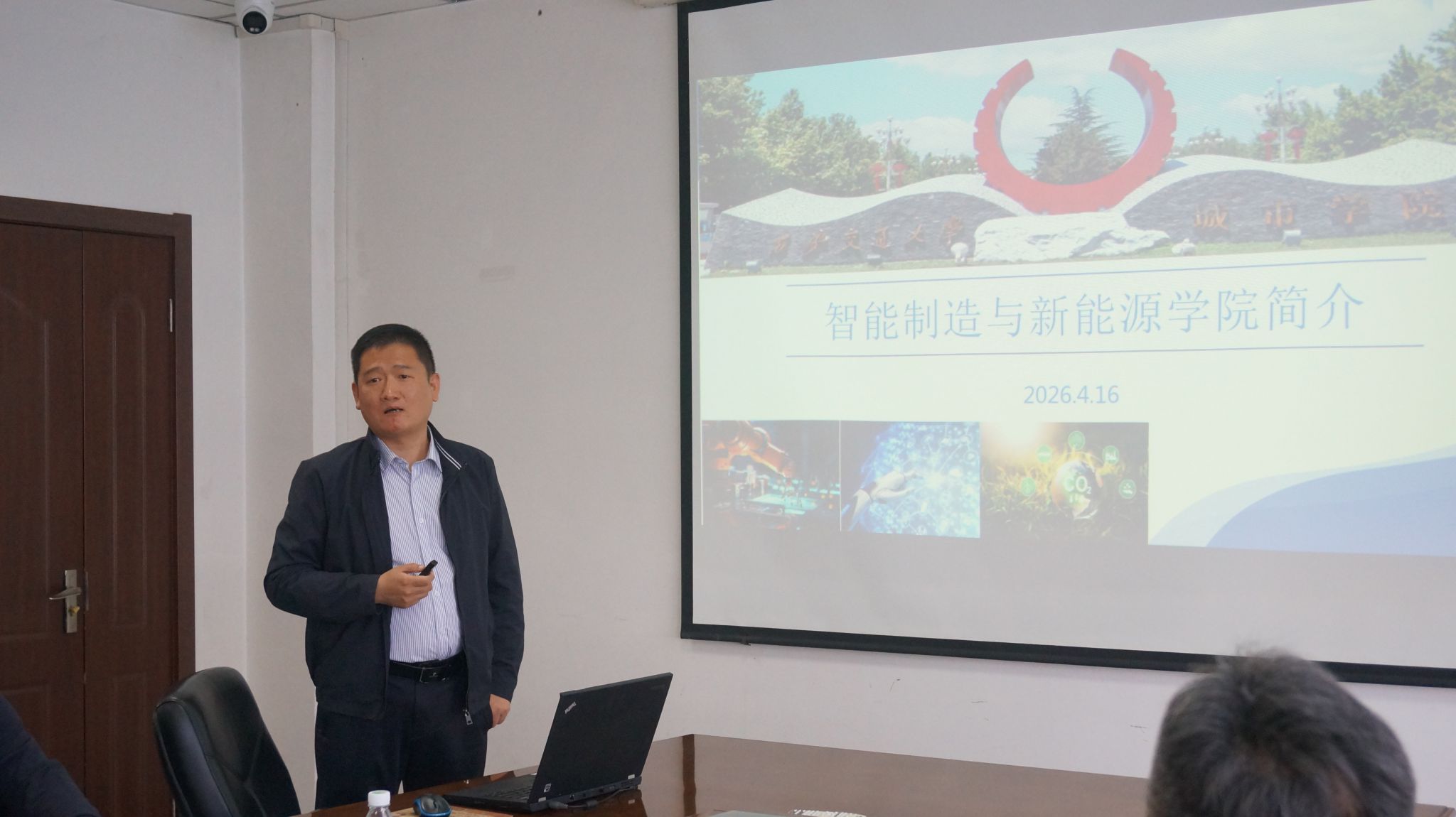 交流环节,牛海波汇报了智能制造与新能源学院情况,重点介绍了学院专业特色、科研平台建设及人才培养成效。他表示,学院将立足应用型办学定位,深化与企业的产教融合,助力双方协同发展。