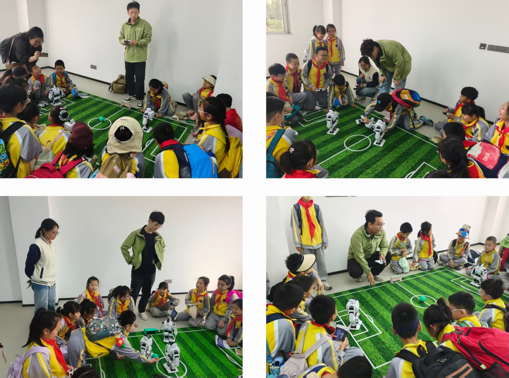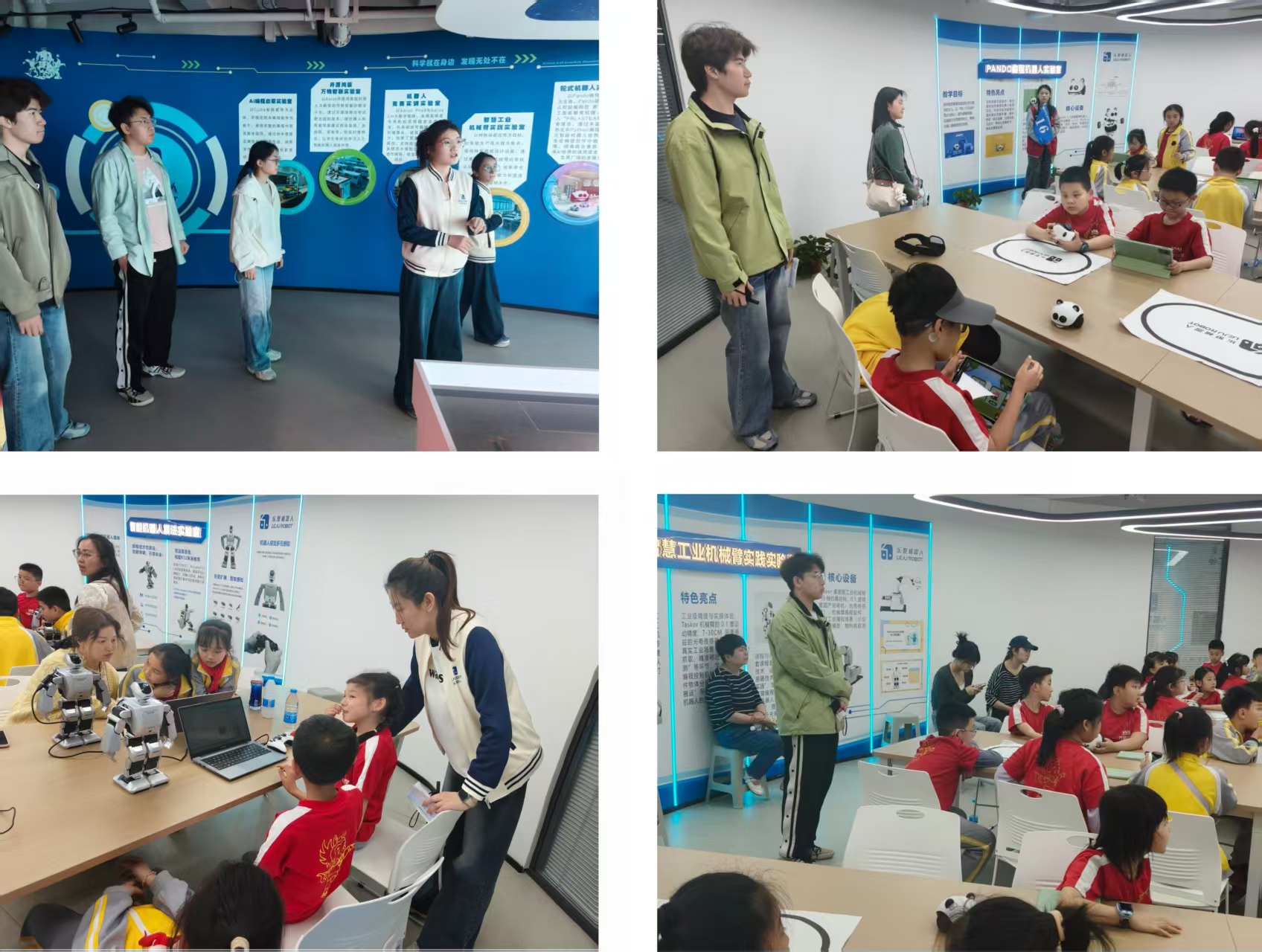 活动中,师生一行深入企业一线,围绕机器人技术应用与产业需求展开实地学习。同学们根据企业安排分成两组,各司其职、协同配合。其中4名同学发挥专业所学,负责机器人设备操作与原理讲解,用通俗易懂的语言向前来研学的学生介绍机器人的基础构造、运行逻辑及操作要点,将课堂理论知识转化为生动的实践教学内容;另外4名同学担任研学领队,严格按照活动流程协助企业人员带领研学班级有序进入指定教室,配合主讲老师维护现场秩序、引导学生积极参与互动,保障各环节顺畅衔接。
