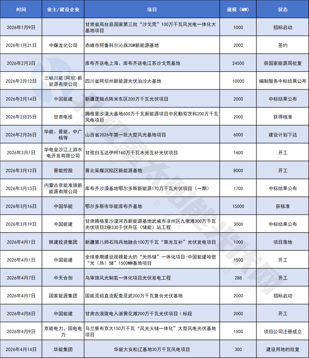 2026年作为“十五五”开局之年,风光大基地建设进入加速期。