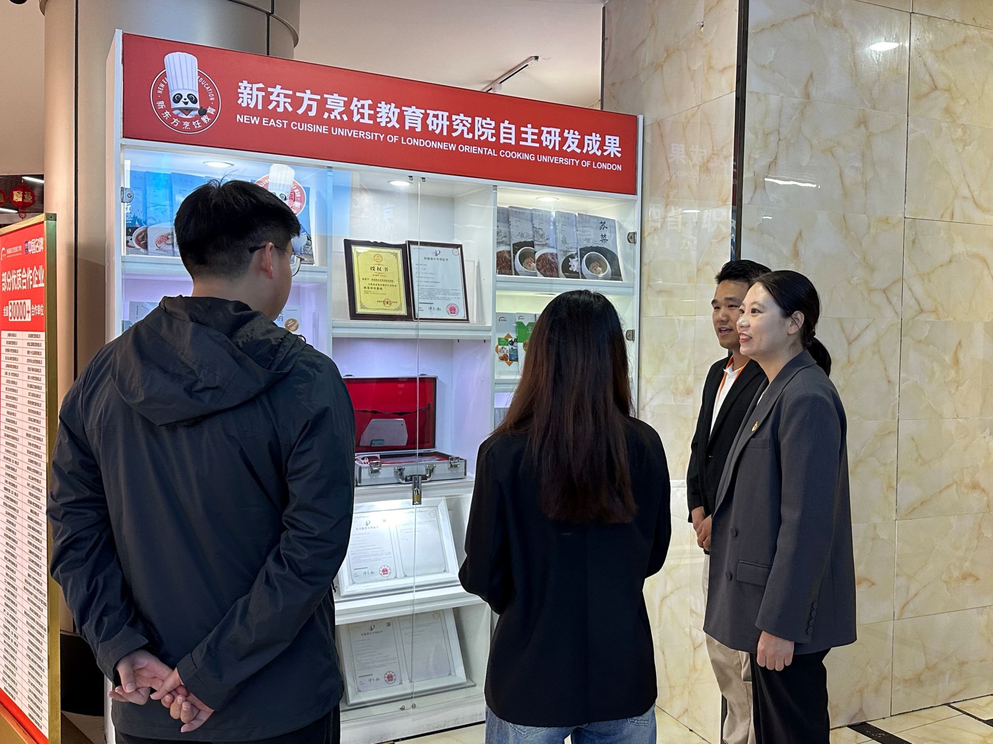 会前,在西安新东方烹饪技工学校陈彦毓、曹怡婷的陪同下,王丽丽一行实地参观了该校教学实训场地与办学历史展厅。从现代化烹饪实训车间的设备布局到校企合作成果陈列,从社团活动剪影到技能竞赛获奖作品,详细了解技能育人与素养培育并育的办学特色,对其将行业标准融入教学实践、以社团活动赋能技能提升的做法有了深刻的了解。