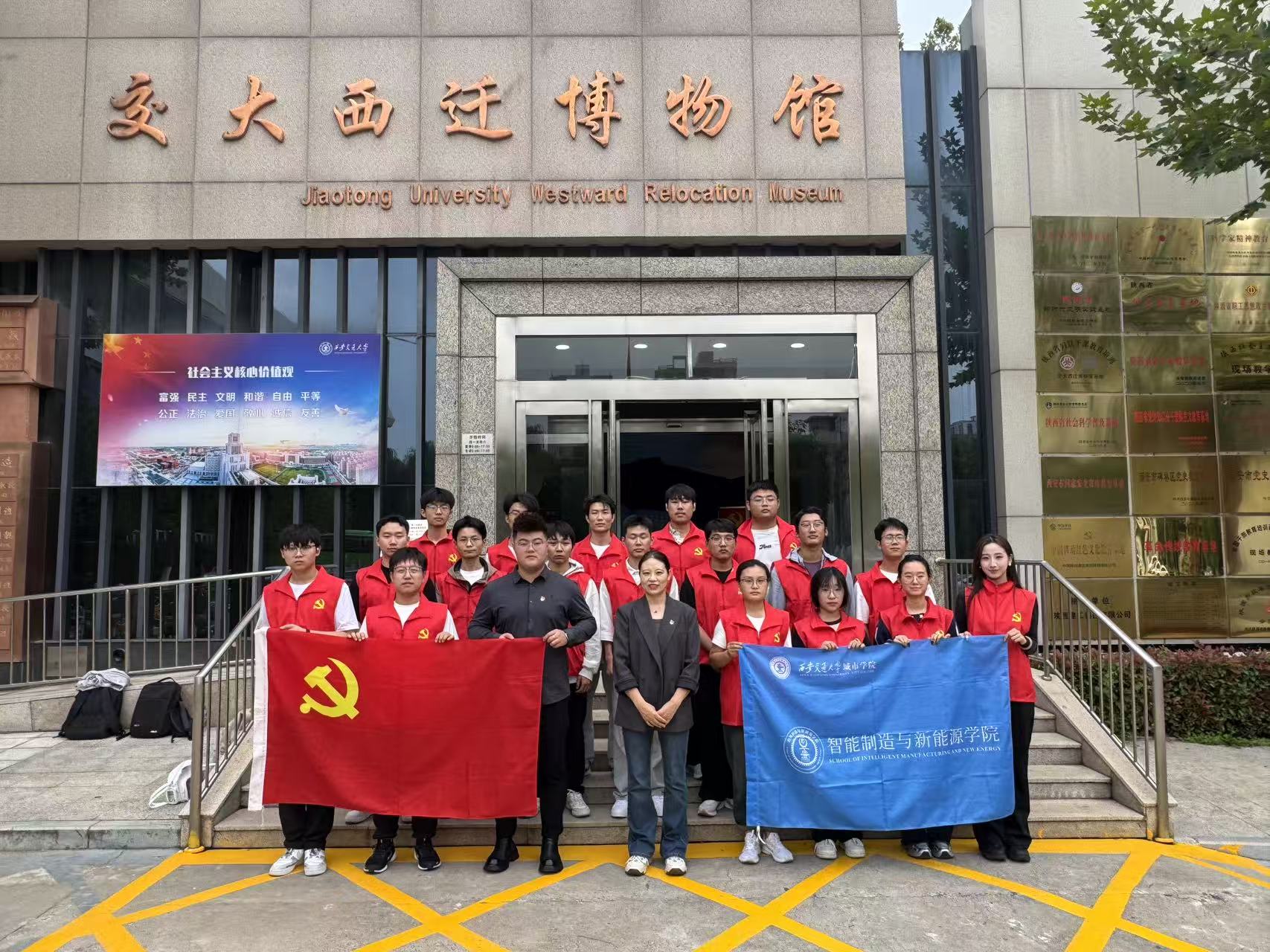 在中华人民共和国成立76周年国庆来临之际,为弘扬爱国主义精神,传承奋斗基因,9月30日下午,智能制造与新能源学院学生党支部组织党员及入党积极分子代表赴西安交通大学西迁博物馆,开展“迎国庆·铸信念·强使命”沉浸式主题党日活动。学生党支部书记王丽丽、宣传委员童治杰及20余名学生党员、入党积极分子参加活动。