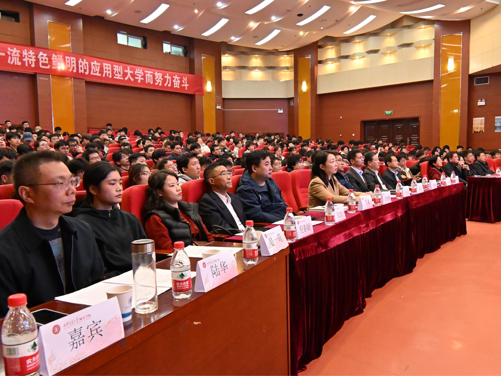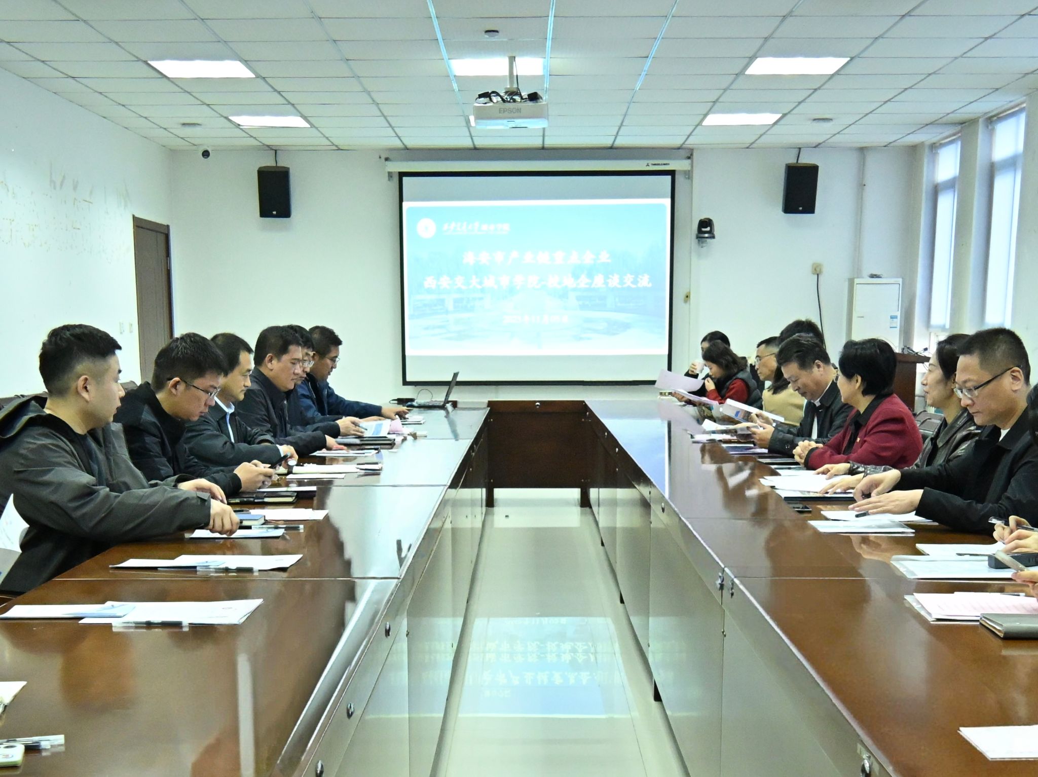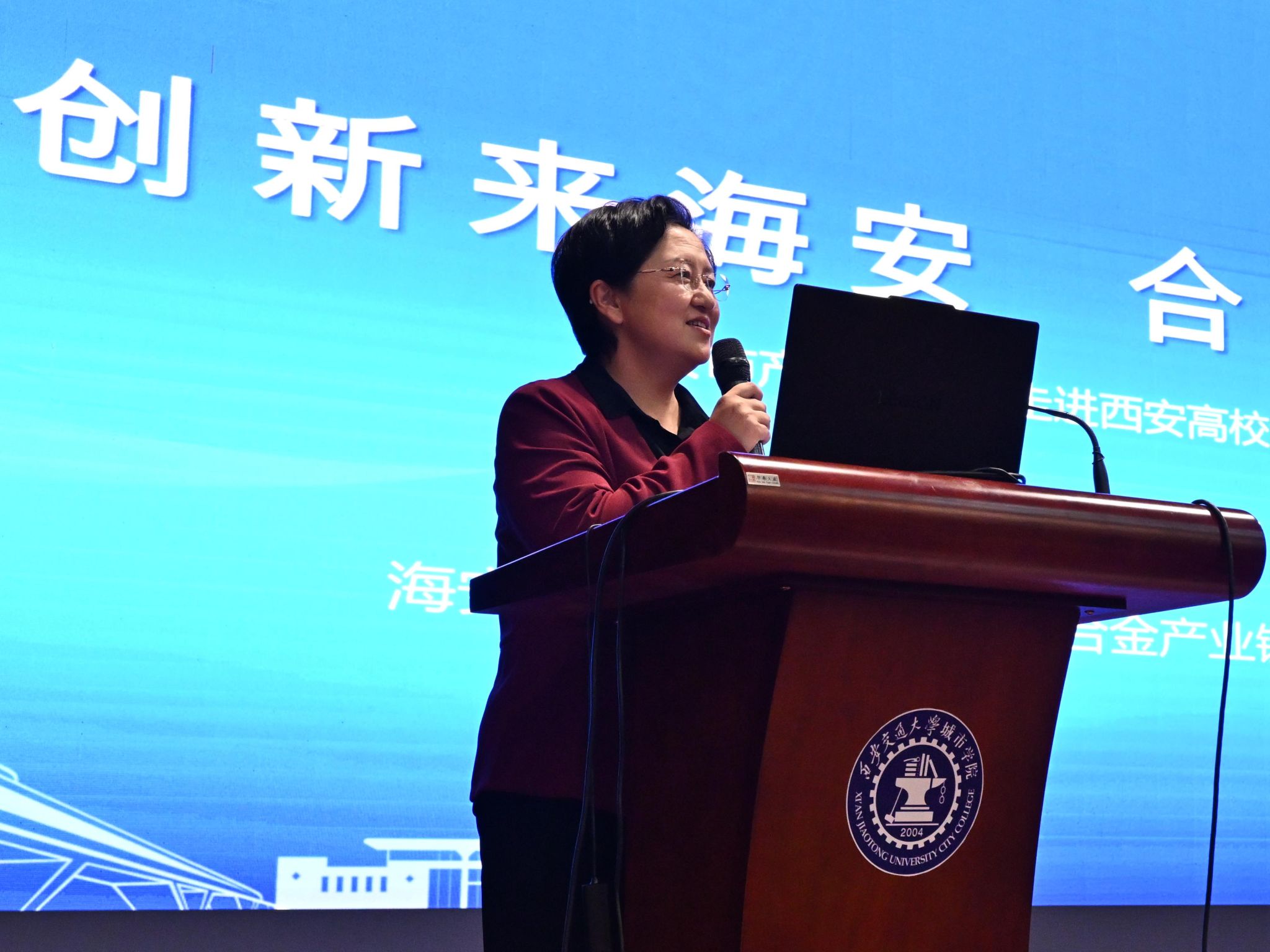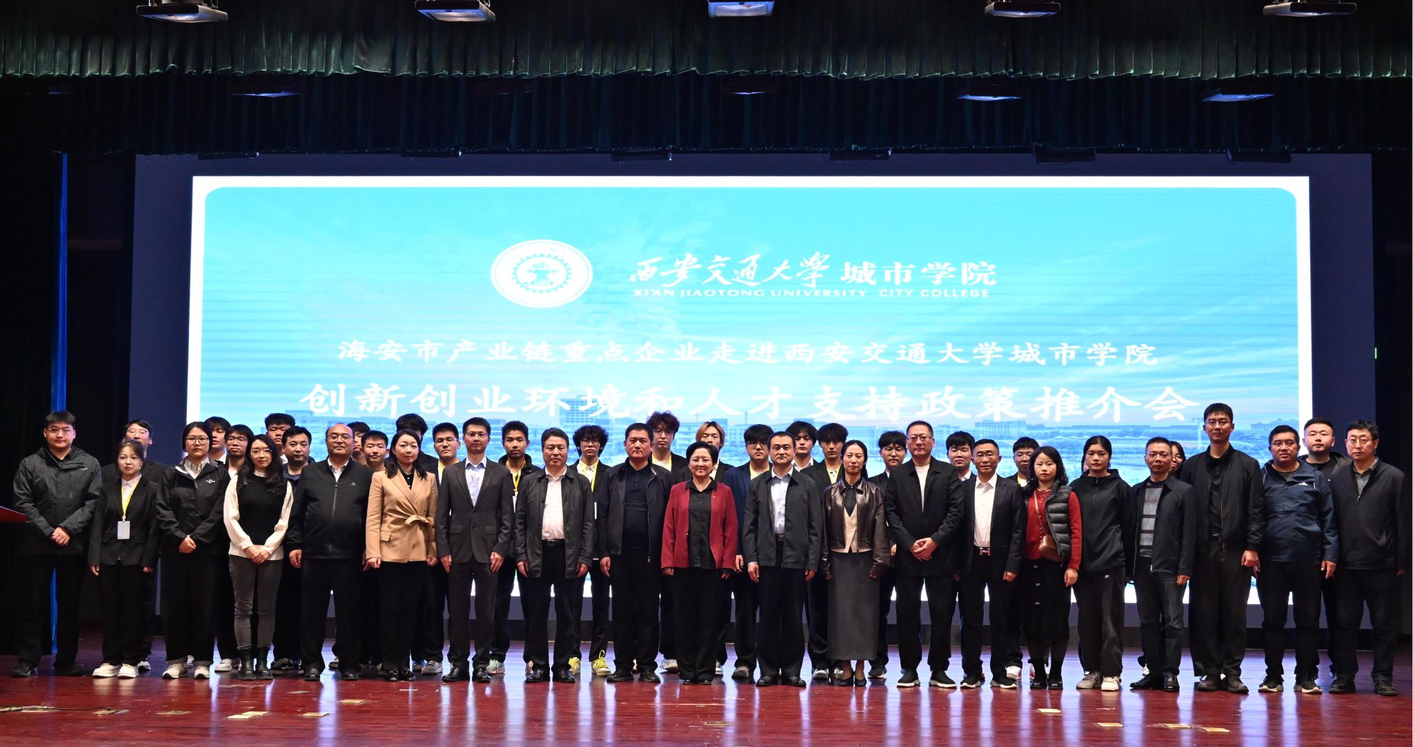 为深化校地企合作、搭建人才交流桥梁,西安交通大学城市学院于11月5日下午举办江苏省海安市创新创业环境及人才支持政策推介会、校地企合作交流会。海安市政协、发改委、人社局等部门领导,重点企业代表与学校师生齐聚一堂,共探合作路径,共话发展新机。海安市政协副主席、高温合金产业链链长张羽翼,海安市政协教文卫体和文史委主任华志刚,海安市发改委党组副书记、副主任张晨曦,海安市政协提案委副主任韩鹏,海安市人社局党组成员、副局长崔世华,海安市人才服务中心主任唐伶俐,海安市发改委中小科科长王菁,海安市人才服务中心副主任陆华,重点企业代表张力、蔡卫东、徐彬、倪春娟、晏一萌;学校党委副书记、副校长陈书荣,招生就业处副处长吴昊翔,行政人事部部长助理杨耀聪,智能制造与新能源学院院长牛海波,副院长王国平,副院长竹有章,机械工程及自动化系主任李娜娜,机械电子工程系主任樊琛,办公室主任李华,学院实验中心负责人赵云芳,教师代表贾谦,全体辅导员以及师生代表400余人共同参加活动。