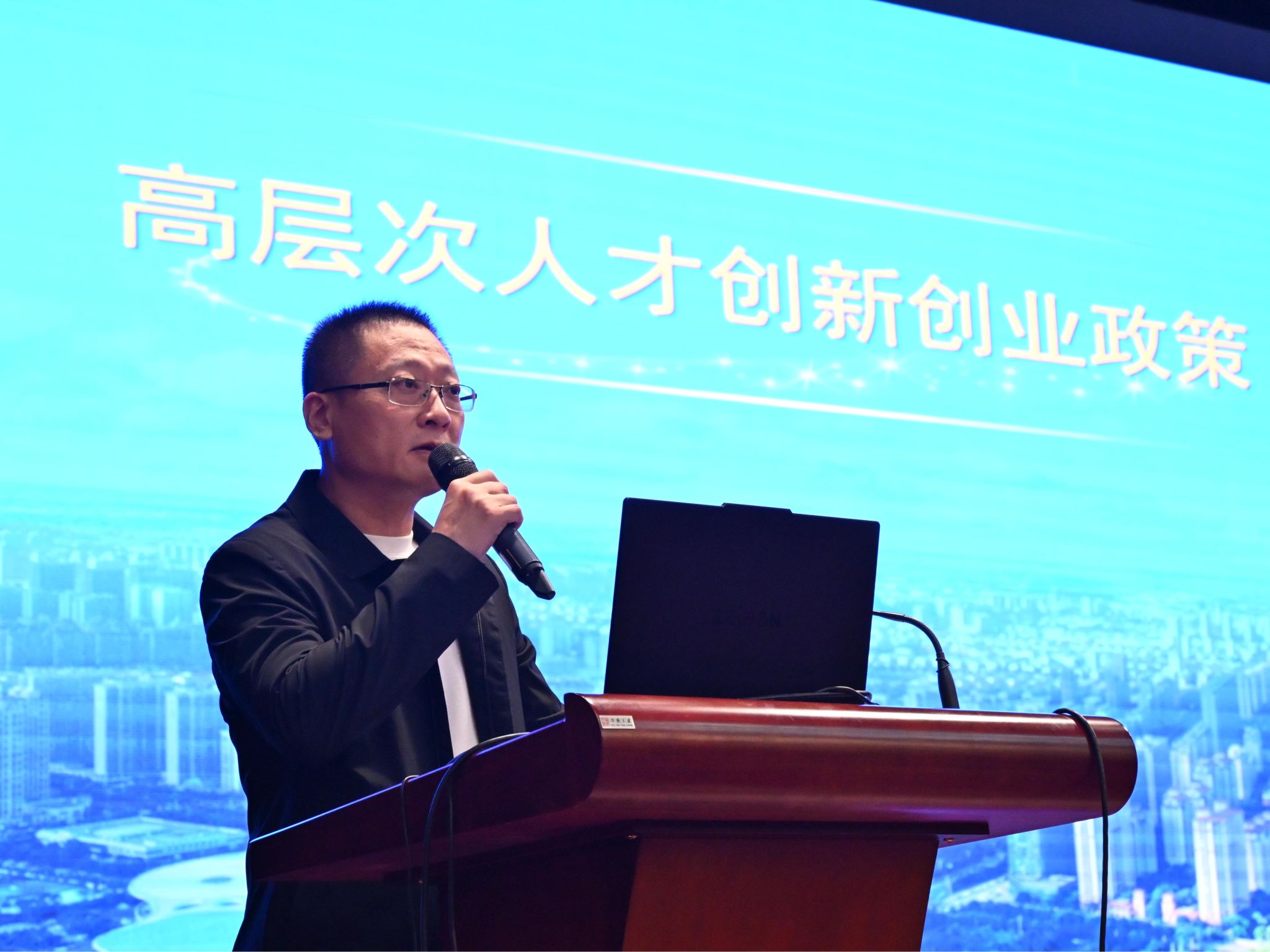 海安市政协副主席、高温合金产业链链长张羽翼全面介绍了海安的区位优势、产业布局与营商环境,展现了海安这座城市蓬勃的发展潜力。海安市人社局党组成员、副局长崔世华详细解读了海安在人才引育留用方面的系列政策,从住房保障、就业扶持到创业补贴、成长激励,全方位的“人才红利”彰显了海安对人才的珍视与诚意。